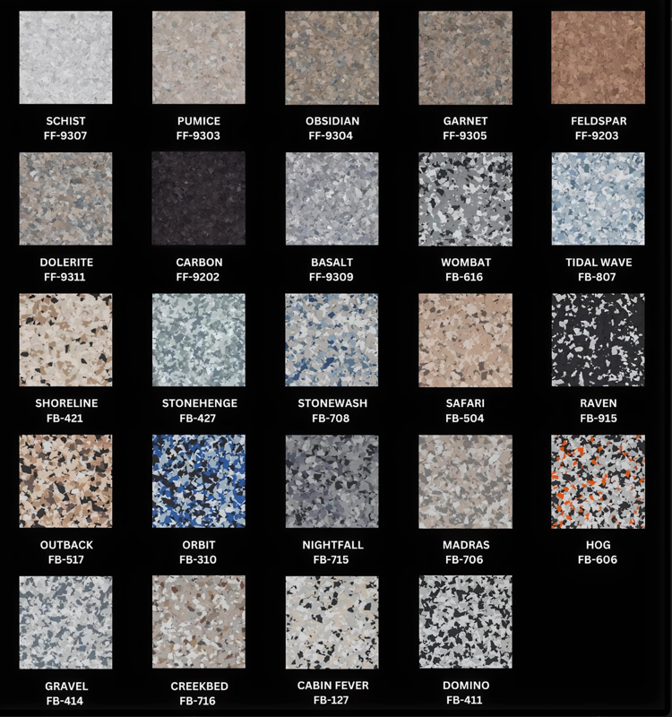 It’s a flooring system that combines durable polyaspartic coatings with decorative vinyl flakes, creating a stylish, textured, and long-lasting finish.